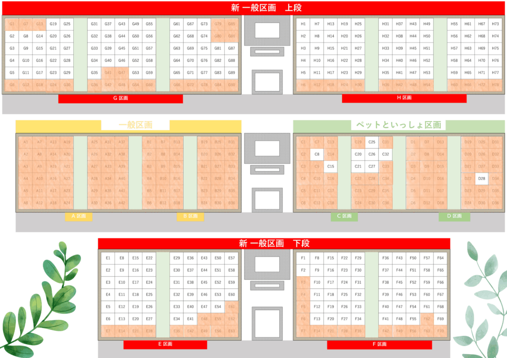 一般区画は、下段(5段目)と上段(7段目)を販売致します。